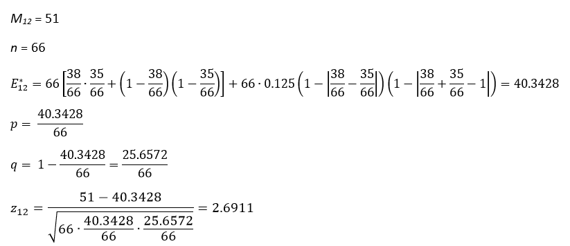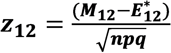 (Equation 1) where M is the count of observed score matches, n is the number of items, p is E*12/n and q = (1-p). E12 is the adjusted expected value of the number of observed matches and is computed as follows:
